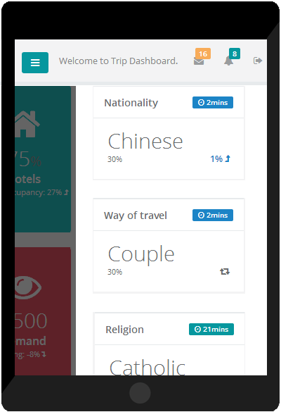 Allow you to optimize your Hotel offer based on curated information, metrics and statistics of your sector. Our software discovers and analyse trends and suggest you ways to capitalize your business.